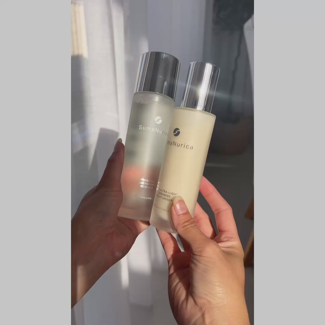 Cleanser, Probiotic Energising Essence, Serum, and Moisturiser